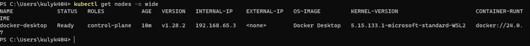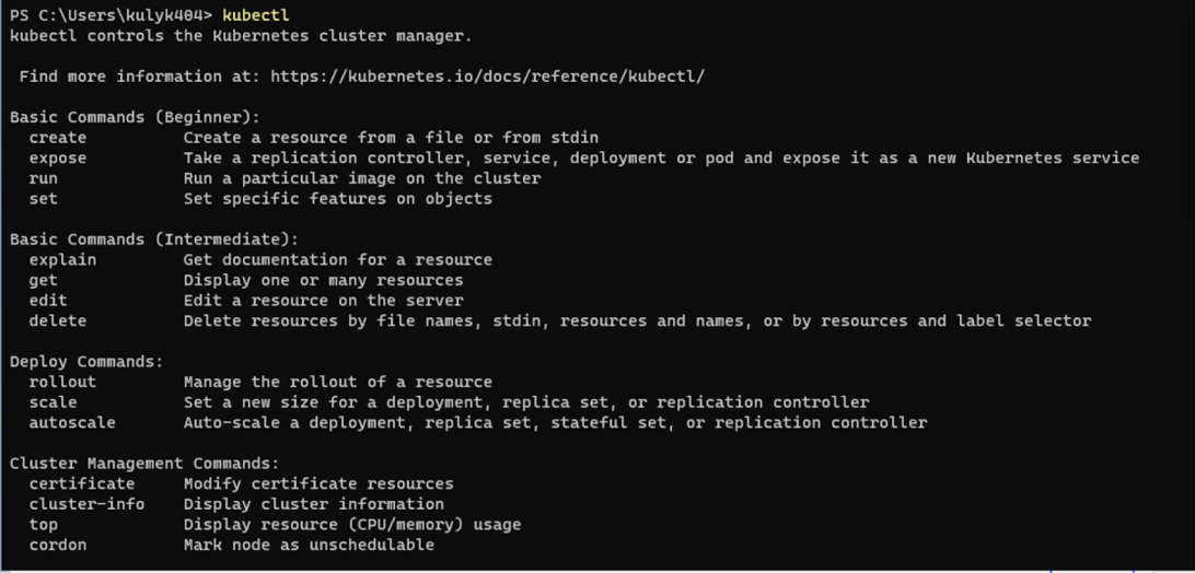 Разом з активацією Kubernetes був встановлений інструмент, який дозволяє комунікувати з кластером та виконувати команди у кластері. Цей інструмент називається kubectl та доступний він у терміналі: