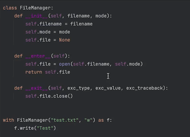 __enter__method returns an object assigned to a variable after theaskeyword. The default value isNoneand it is optional. - If an error occurs in